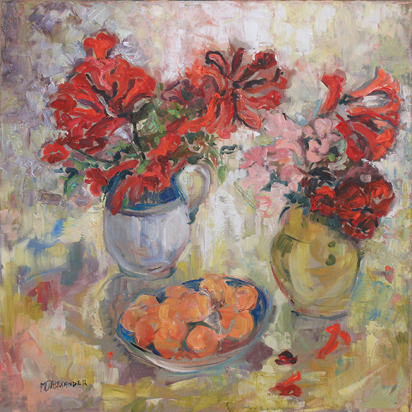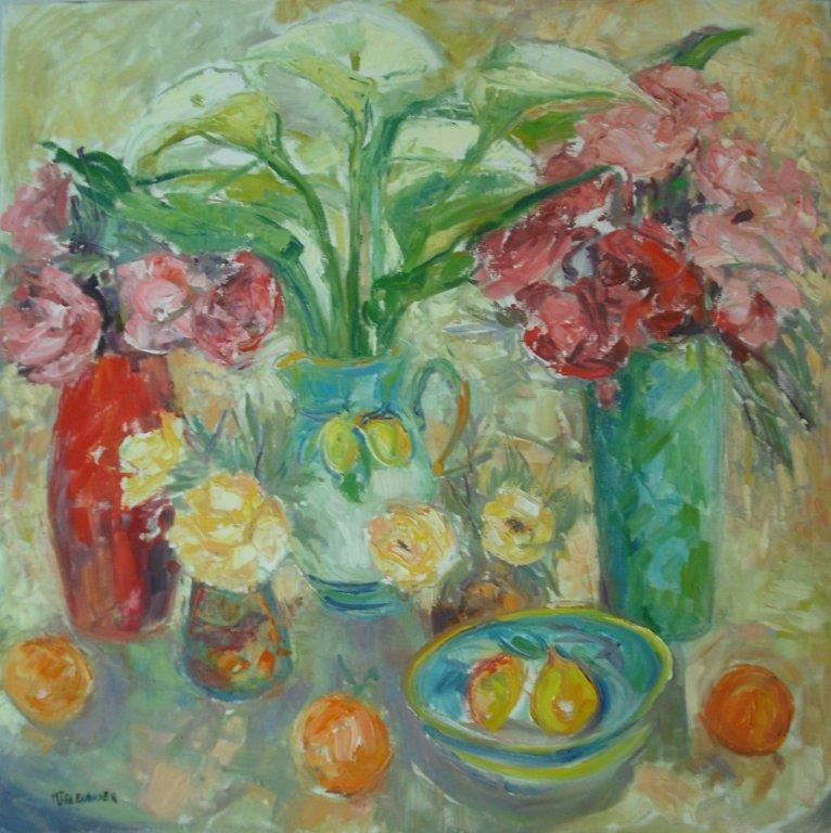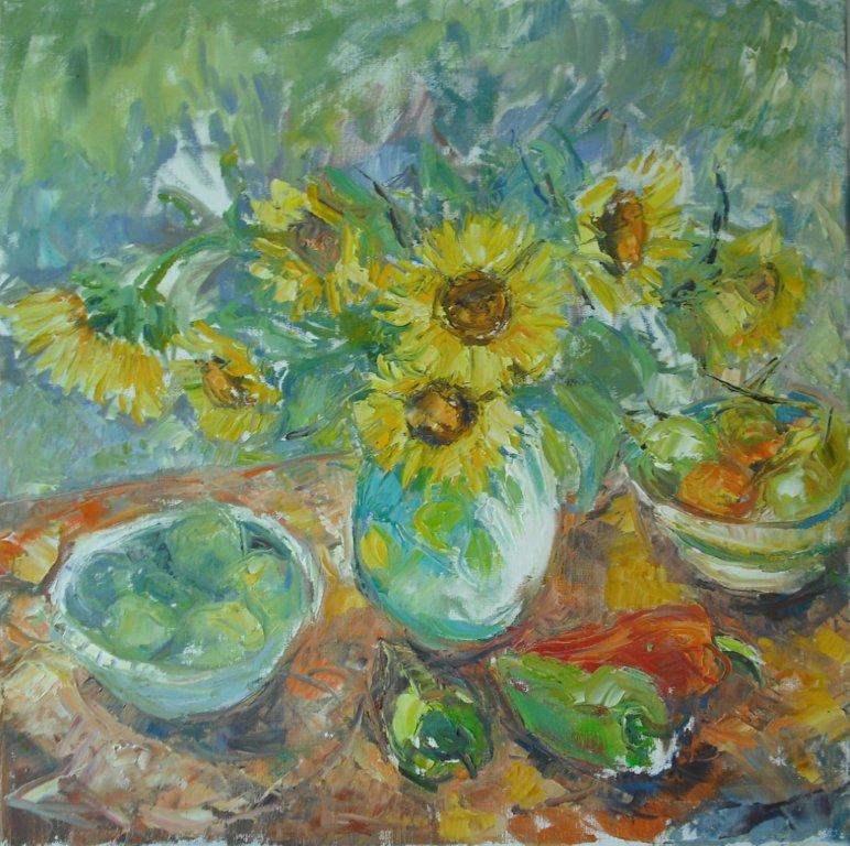 Still Lifes All works are oil on canvas unless otherwise stated. Paintings are priced from £500 to £1,600 depending on size. Wild Anemone with Freesias 24 x 30 cms Wild Anemone with Orange 24 x 30 cms Flowers for my beloved 80 x 80 cms Sunflowers with peppers 60 x 60 cms Roses and lemons 40 x 40 cms Spikiness of sunflowers Festa della Donna 72 x 60 cms Freesias, irises and lillies 80 x 80 cms Sorrento interior Stolen Fruit 80 x 80 cm Sunflowers Lemons And Roses 80 x 80 cm